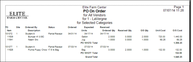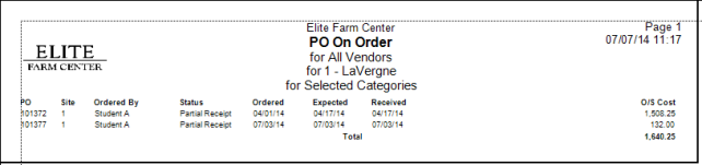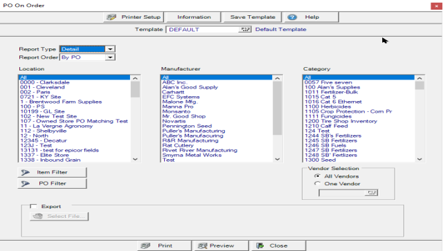 Utilize a PO Filter to limit the report if the report order By PO Number has been selected. Filter by Requested or Expected Date, Operator or PO Status.