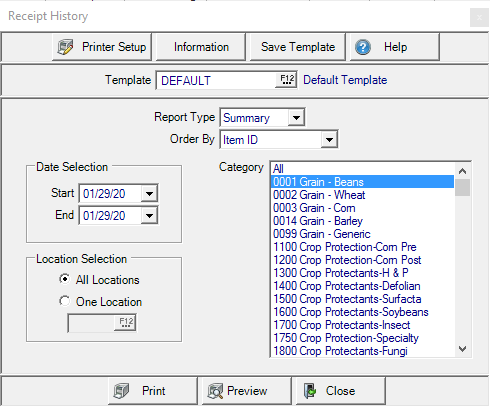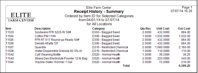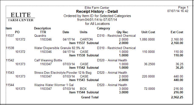 View an Item Receipt History in Summary or Detail for a Date Range on an individual day.