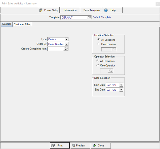 Order By defaults to Order Number or Customer ID can be selected form the drop down list.