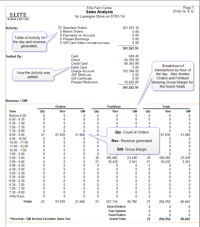 Create a Sales Analysis report to receive a count of transactions, information on how transactions were settled and an hourly breakdown of transactions processed. This report can be created for one or all locations for the current or any date.