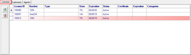 Use to add a new license to the applicator. Limited information can be edited on an applicator by clicking into Type, Expiration or Status.