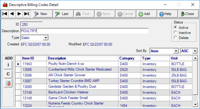 Use Created and Modified to view the Username, Date and Time the Descriptive Billing Code was created or edited.