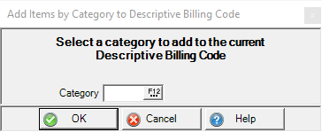 Use F12 to search for an Item Category to add. All items included in the Item Category will be incuded.