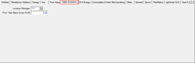 If enabled in Merchant Ag FIN, use the Sales Incentive tab to specify a Location Manager by entering an Operator ID or using F12 to search.