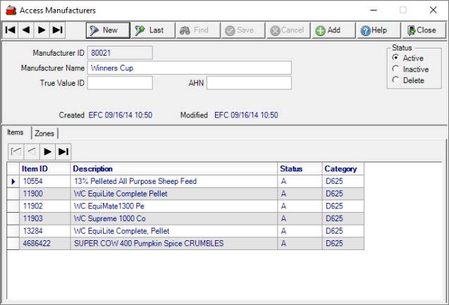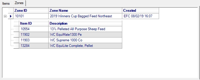 Adding a Manufacturer ID to item detail will populate the Items tab and any Item with a Manufacturer will populate the Zones tab when an Item is added to a Pricing Zone.