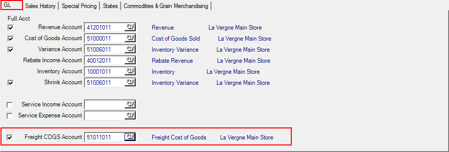 In Merchant Ag PM, enter a Freight Cost of Goods General Ledger account on all applicable Item Categories found in Setup > Access Categories > GL. Enter either a Sub or Full GL account or select F12 to search.