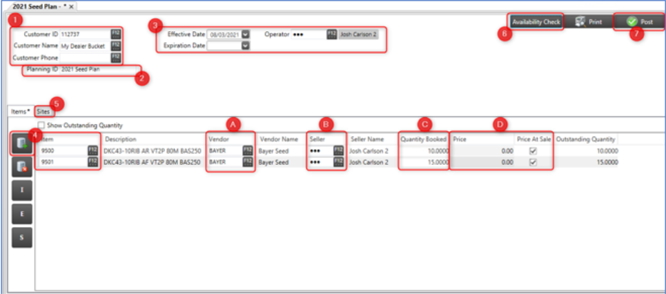 Do not manually add seed items using Access Item Detail. Seed items submitted to Bayer using Grower Planning should be imported.