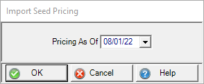 Navigate to Services > Manual Processing and select Import Seed Pricing. This process must be run once at the beginning of the season with the date set to August 1 of the current year.